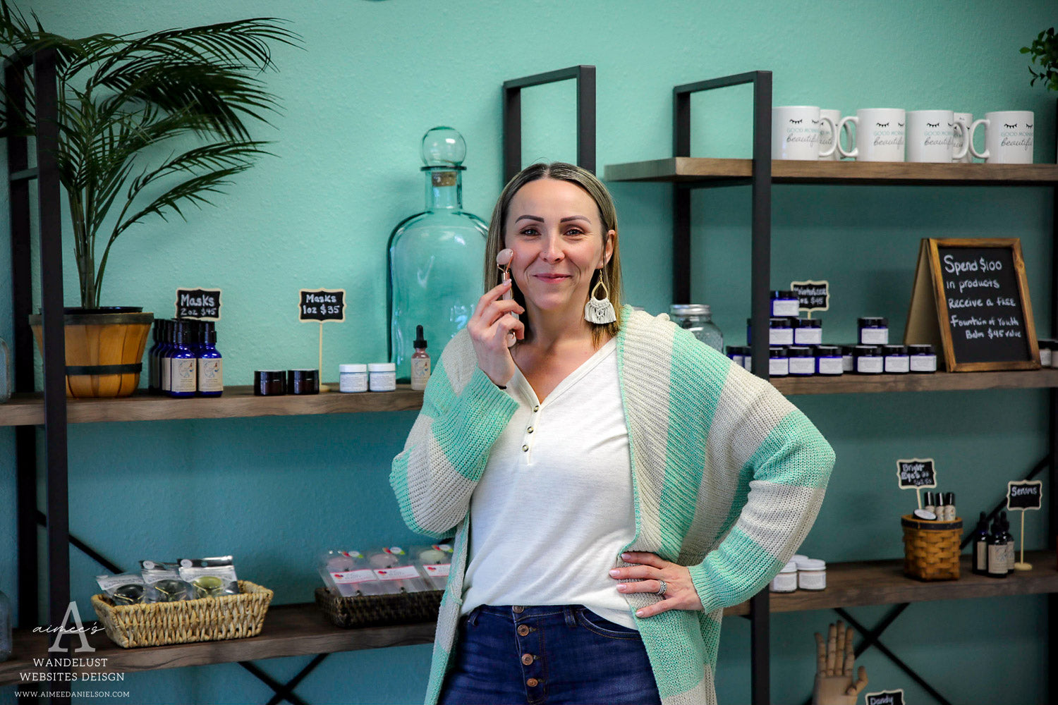 As a sought-after expert in the beauty industry, she has an obsession with perfecting her Holistic Skincare line. She believes in the power of human touch and holistic living and is devoted to bringing out the best in your skin with her lotions, potions and elixirs which she forages for locally and travels to different areas to bring you amazing ingredients. All products are handcrafted in Yelm, Washington!